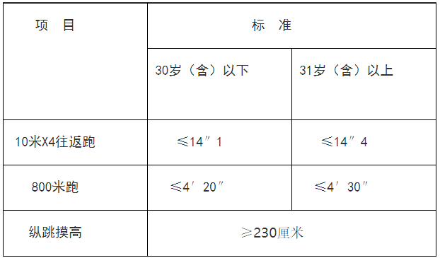 公安機關錄用人民警察體能測評項目和標準(暫行)