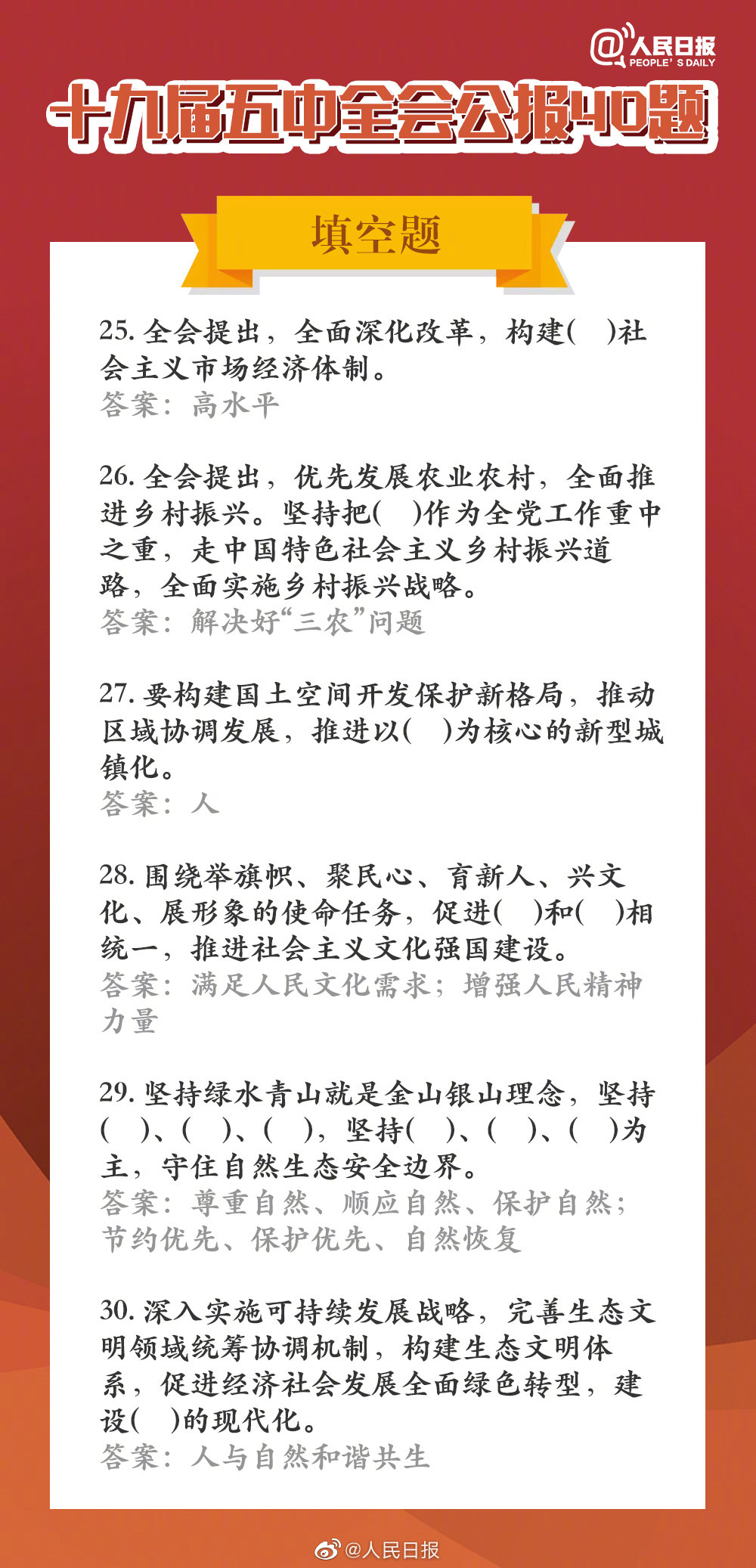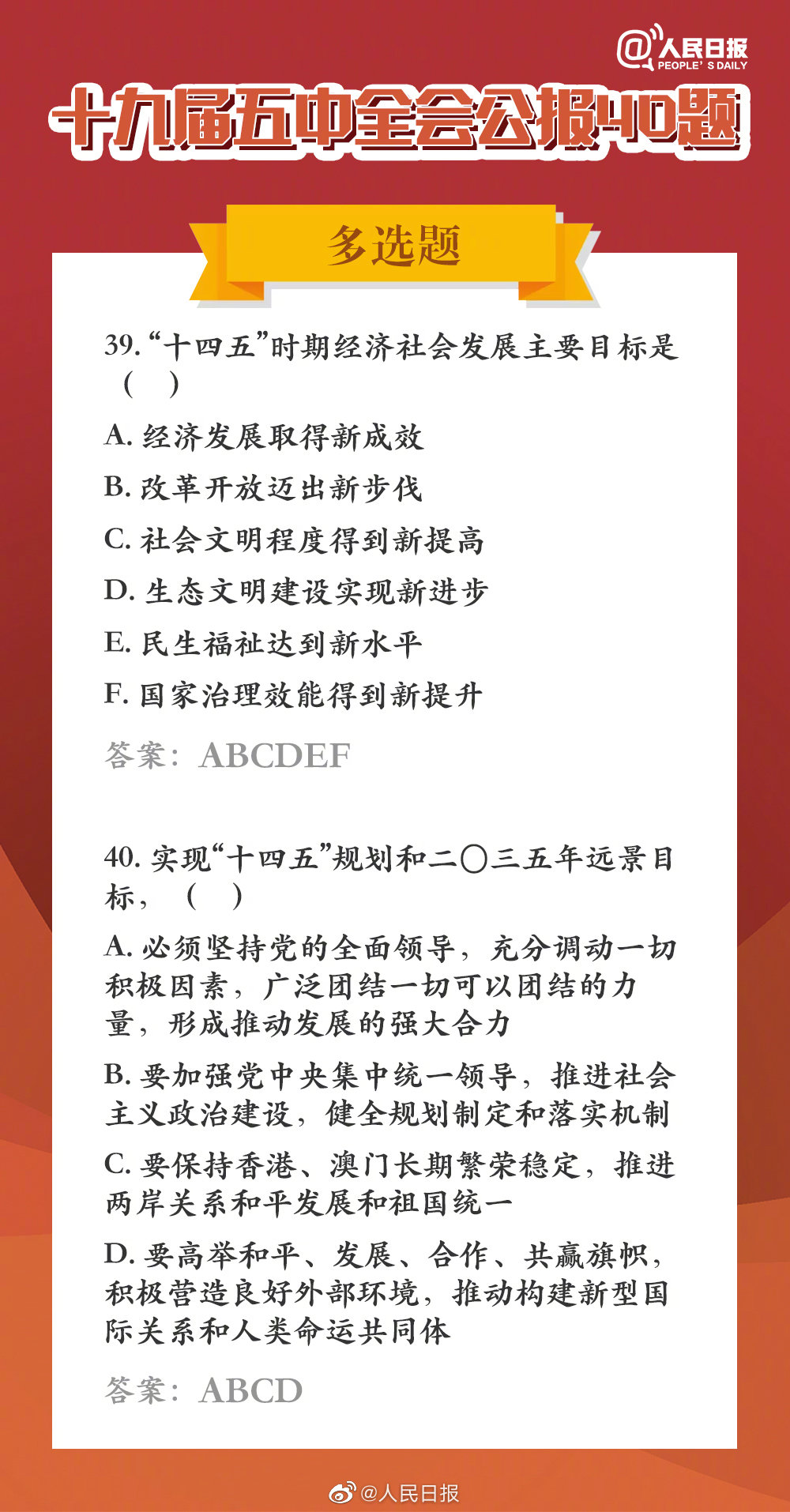 11-03 09:25:14閱讀()人民日?qǐng)?bào)【長(zhǎng)知識(shí)!五中全會(huì)公報(bào)40題,你會(huì)做幾道題?】預(yù)計(jì)2020年國(guó)內(nèi)生產(chǎn)總值突破多少億元?“十三五”時(shí)期,我國(guó)有多少農(nóng)村貧困人口實(shí)現(xiàn)脫貧?到2035年,我國(guó)人均國(guó)內(nèi)生產(chǎn)總值達(dá)到什么水平?十九屆五中全會(huì)公報(bào)里的這些問(wèn)題,你都了解嗎?40道題帶你學(xué)習(xí)↓↓可能用得上,轉(zhuǎn)存! ???