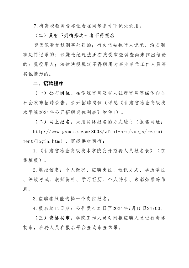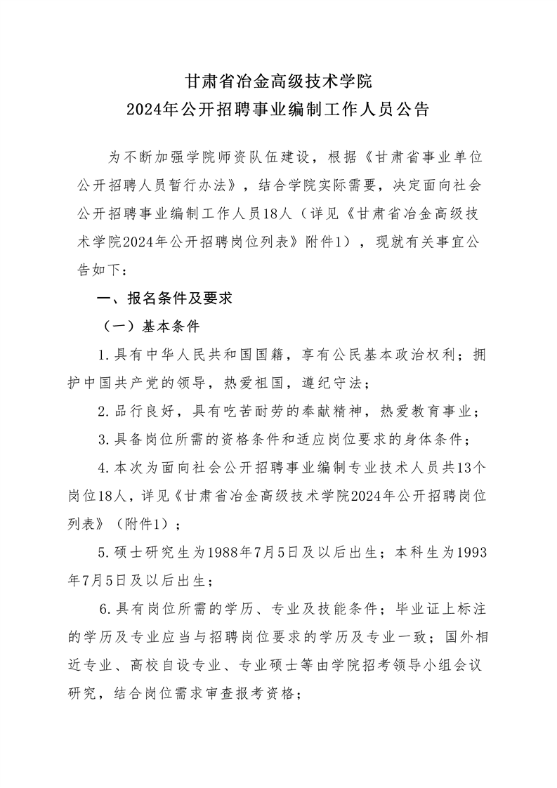 甘肅省冶金高級(jí)技術(shù)學(xué)院2024年公開招聘崗位列表 -公告.pdf