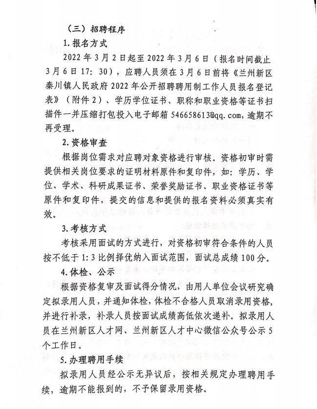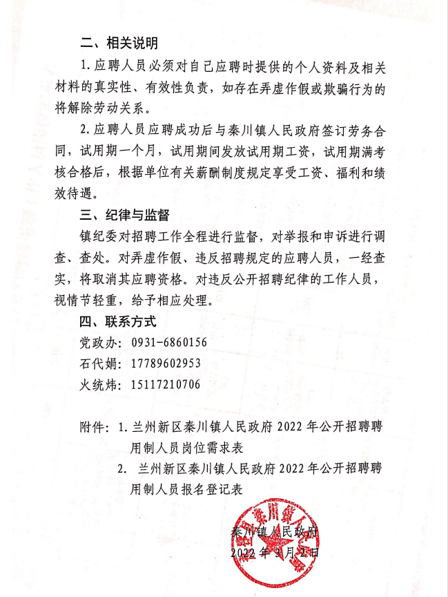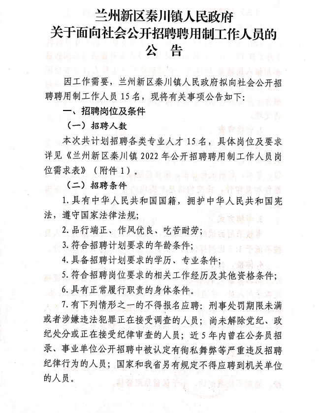 2022年蘭州新區(qū)秦川鎮(zhèn)人民政府面向社會公開招聘聘用制工作人員公告