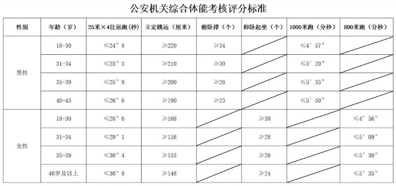 3.測試內(nèi)容:參照《公安機關(guān)綜合體能考核評分標準》(附件2)執(zhí)行。