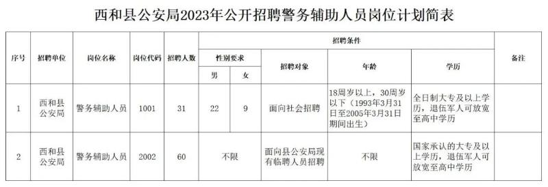 附件:1、西和縣公安局2023年公開招聘警務(wù)輔助人員崗位計劃簡表
