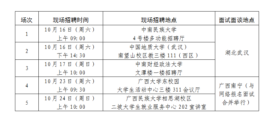 (一)現(xiàn)場(chǎng)報(bào)名。招聘會(huì)現(xiàn)場(chǎng)接受應(yīng)聘報(bào)名,應(yīng)聘者應(yīng)攜帶《高校畢業(yè)生就業(yè)推薦表》(已畢業(yè)的攜帶相應(yīng)學(xué)歷學(xué)位證書)和身份證、專業(yè)技術(shù)資格證書等材料,并選擇符合條件的崗位,填寫《2021年崇左市高層次(急需緊缺)人才招聘報(bào)名審核登記表》進(jìn)行現(xiàn)場(chǎng)報(bào)名。現(xiàn)場(chǎng)招聘時(shí)間安排: