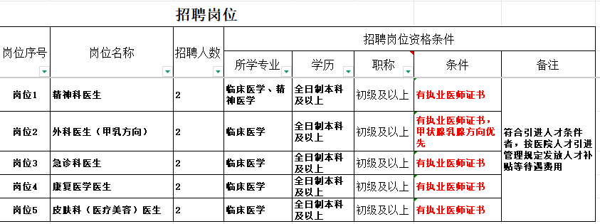 根據(jù)醫(yī)院業(yè)務(wù)發(fā)展需求,現(xiàn)向社會(huì)公開招聘以下崗位人員,具體招聘事宜如下: