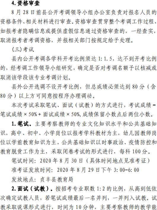 2020年黔西南貞豐縣縣城中小學(xué)、幼兒園缺編教師縣內(nèi)公開考調(diào)、縣外公開選調(diào)工作公告