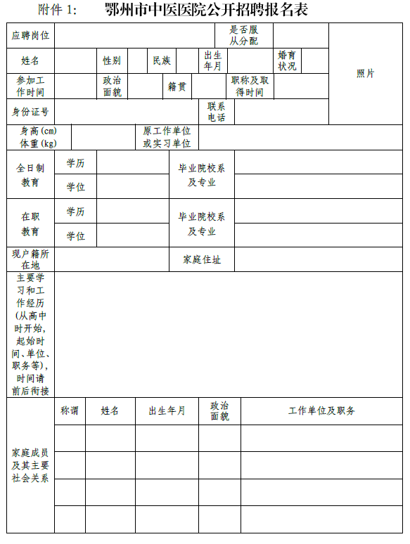 附件:1.鄂州市中醫(yī)醫(yī)院公開招聘報名表