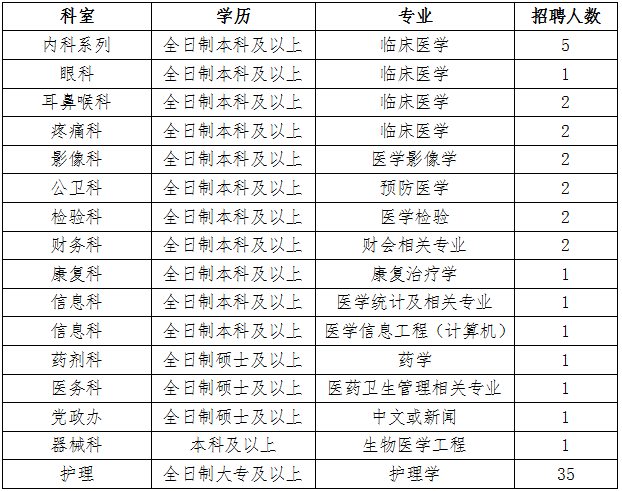 5、有三級綜合醫(yī)院工作經(jīng)驗,條件可適當(dāng)放寬(必須提供醫(yī)院工作證明)。