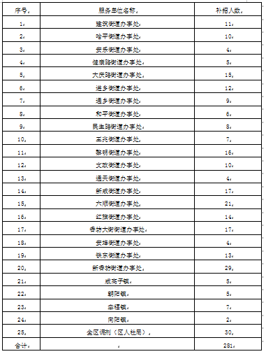 香坊區(qū)各街道辦事處、鎮(zhèn)勞動保障協(xié)理員補(bǔ)充招聘名額