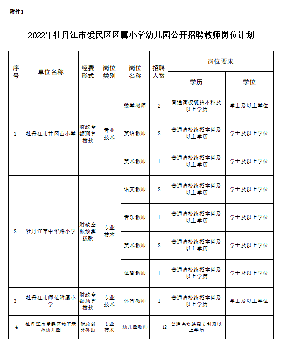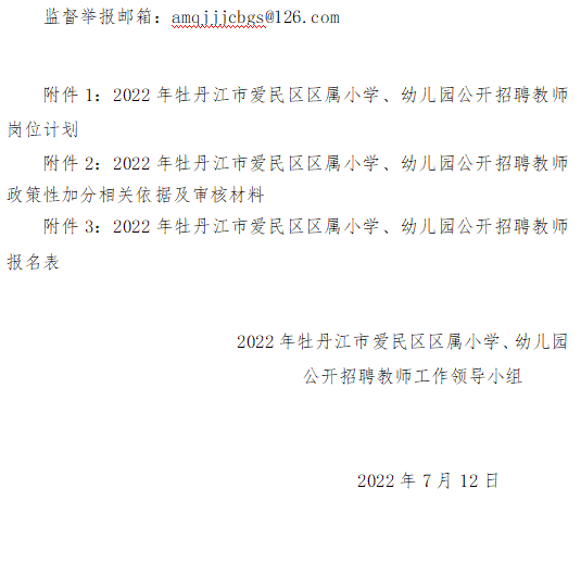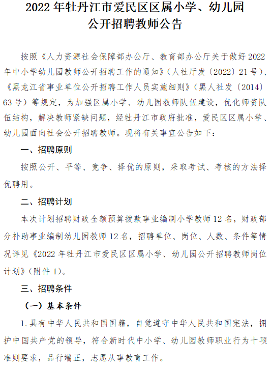 2022年牡丹江市愛(ài)民區(qū)區(qū)屬小學(xué)、幼兒園公開招聘教師公告