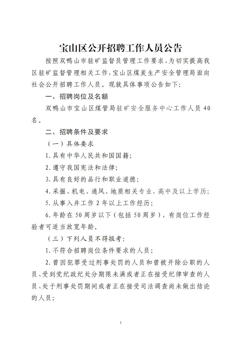 2024-01-27 22:43:14閱讀()雙鴨山市寶山區(qū)人民政府按照雙鴨山市駐礦監(jiān)督員管理工作要求,為切實提高我區(qū)駐礦監(jiān)督管理相關(guān)工作,寶山區(qū)煤炭生產(chǎn)安全管理局面向社會公開招聘工作人員?,F(xiàn)就具體事項公告如下: