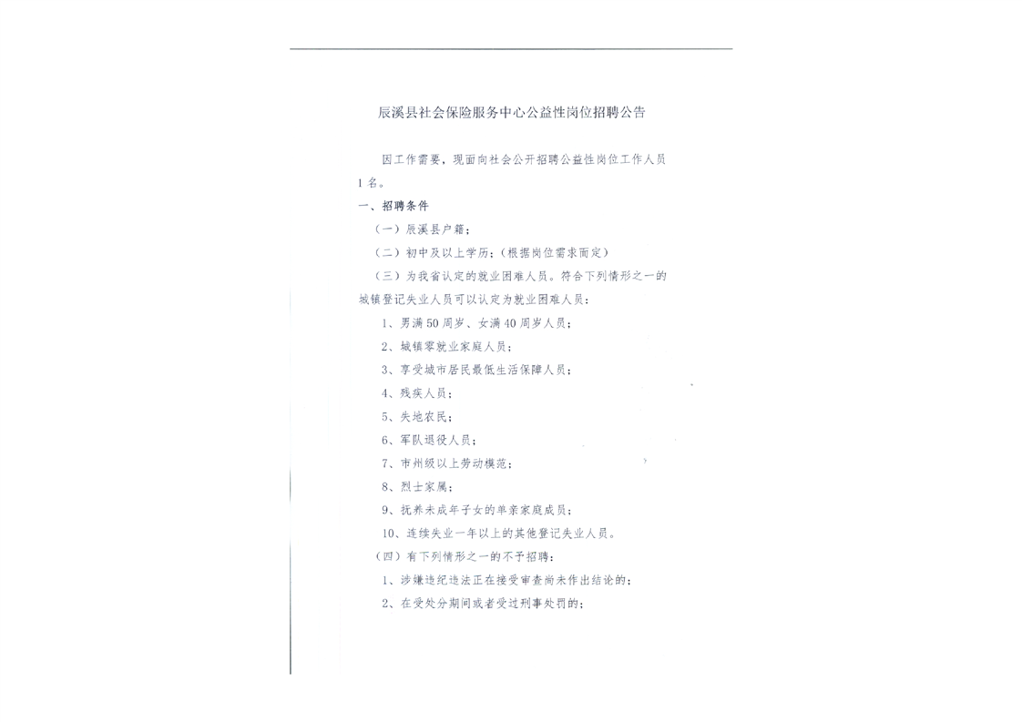 2024年懷化辰溪縣社會(huì)保險(xiǎn)服務(wù)中心公益性崗位招聘公告