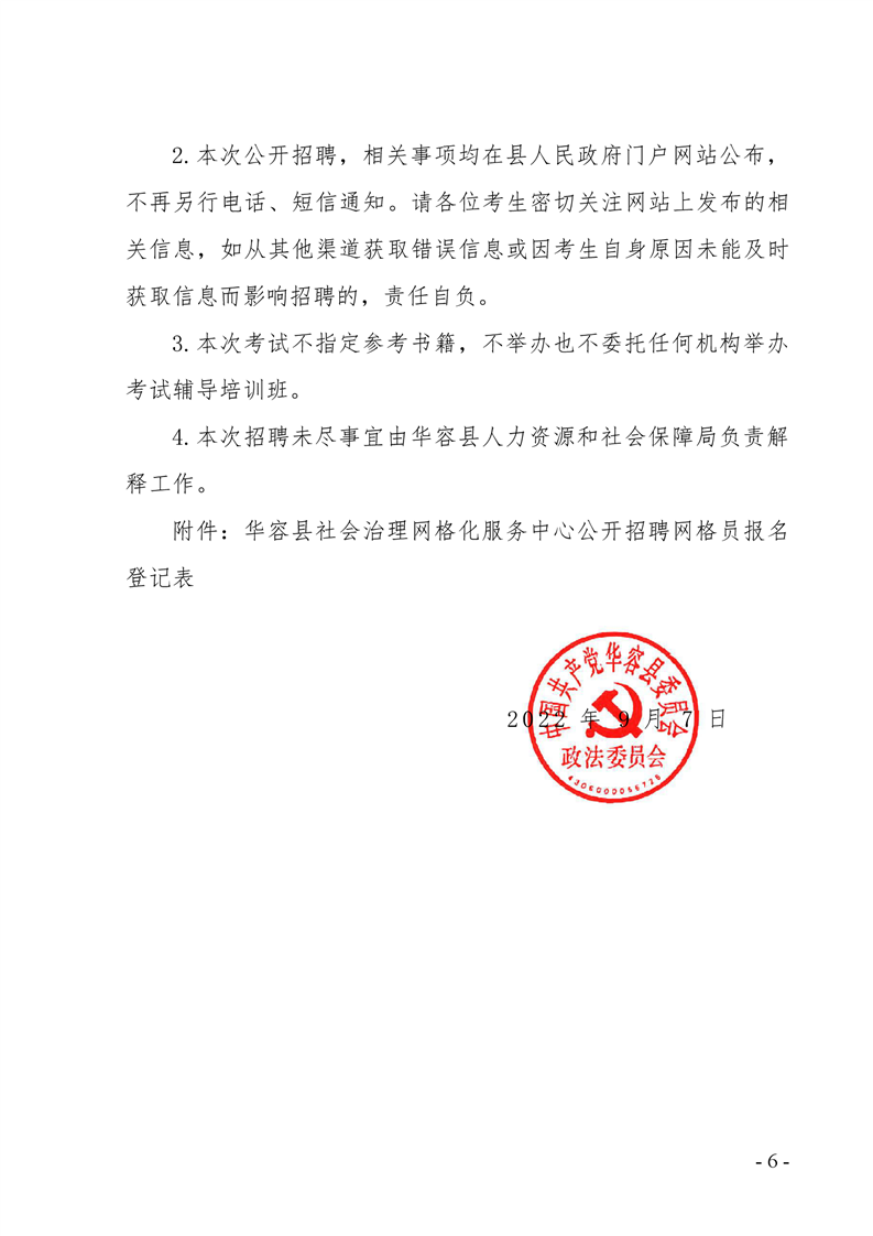 2022-09-14 11:19:19閱讀()華容縣人民政府根據(jù)《岳陽市城鄉(xiāng)村(社區(qū))網(wǎng)格化服務(wù)管理實施方案》(岳辦[2017]5號)文件精神,經(jīng)報請縣委同意,縣委政法委書記辦公會議研究,決定面向社會公開招聘網(wǎng)格員,現(xiàn)將有關(guān)事項公告如下: