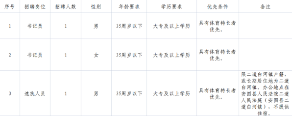 相關(guān)要求:請將身份證正反面、學(xué)歷或者學(xué)位證書、填寫好的報名表、其他相關(guān)證書以壓縮包的方式發(fā)送至郵箱antufayuangbk@sina.com。注:報名表請點(diǎn)擊下載。崗位咨詢電話: 0433-5895023
