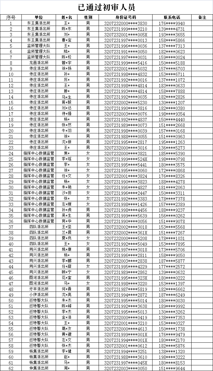 已參加灌云縣公安局2022年2月份招錄(因疫情影響,該次招錄未能正常開展)報名的人員此次無需再次報名,通過初審人員名單見附件。