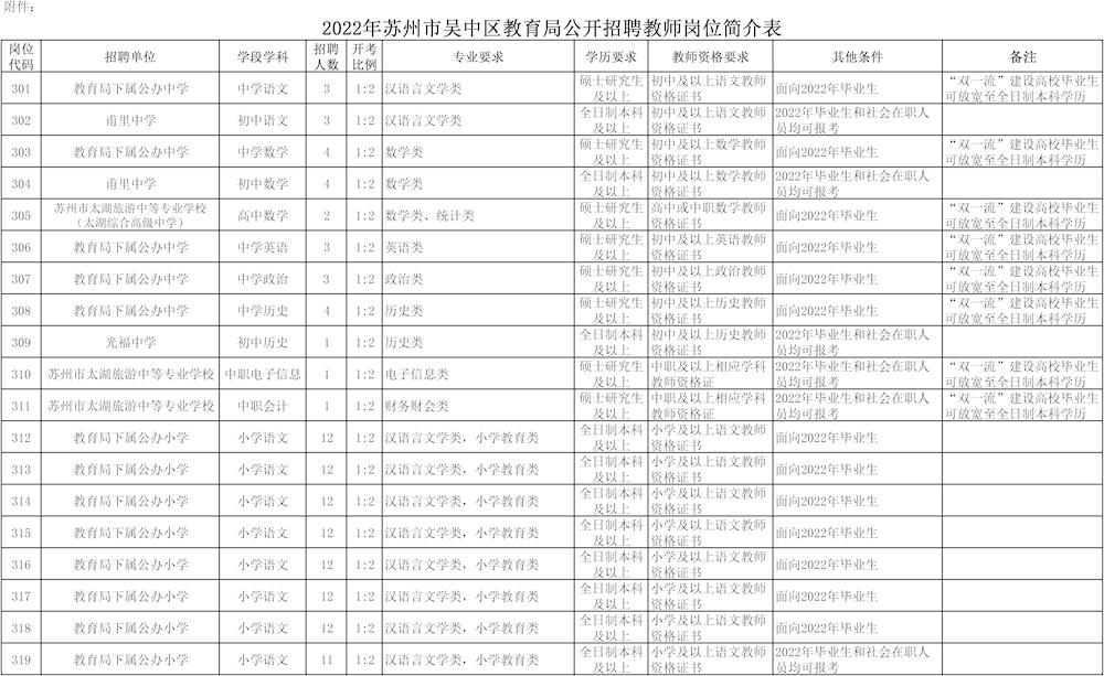 附件:《2022年蘇州市吳中區(qū)教育局公開招聘教師崗位簡介表》