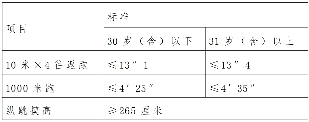 1.體能測試入圍人員:資格復審合格人員參加體能測試。
