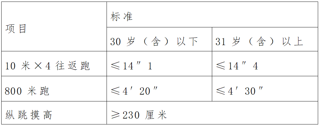 注意事項:體能測試項目不進行復測。因體能測試不合格產生的職位空缺,在同職位筆試成績合格者中按照從高分到低分的順序依次遞補(末位成績并列者同時遞補)。遞補人員先進行資格復審,復審合格后參加體能測試,體能測試遞補僅限一次。