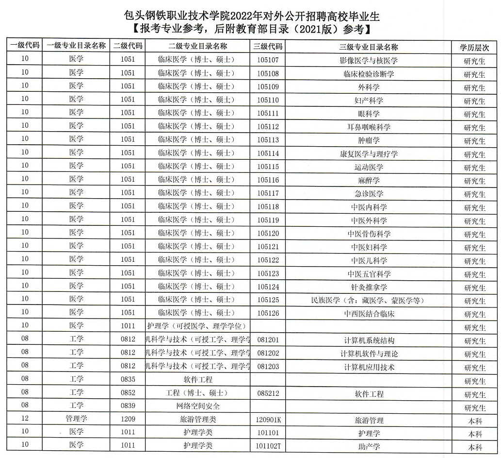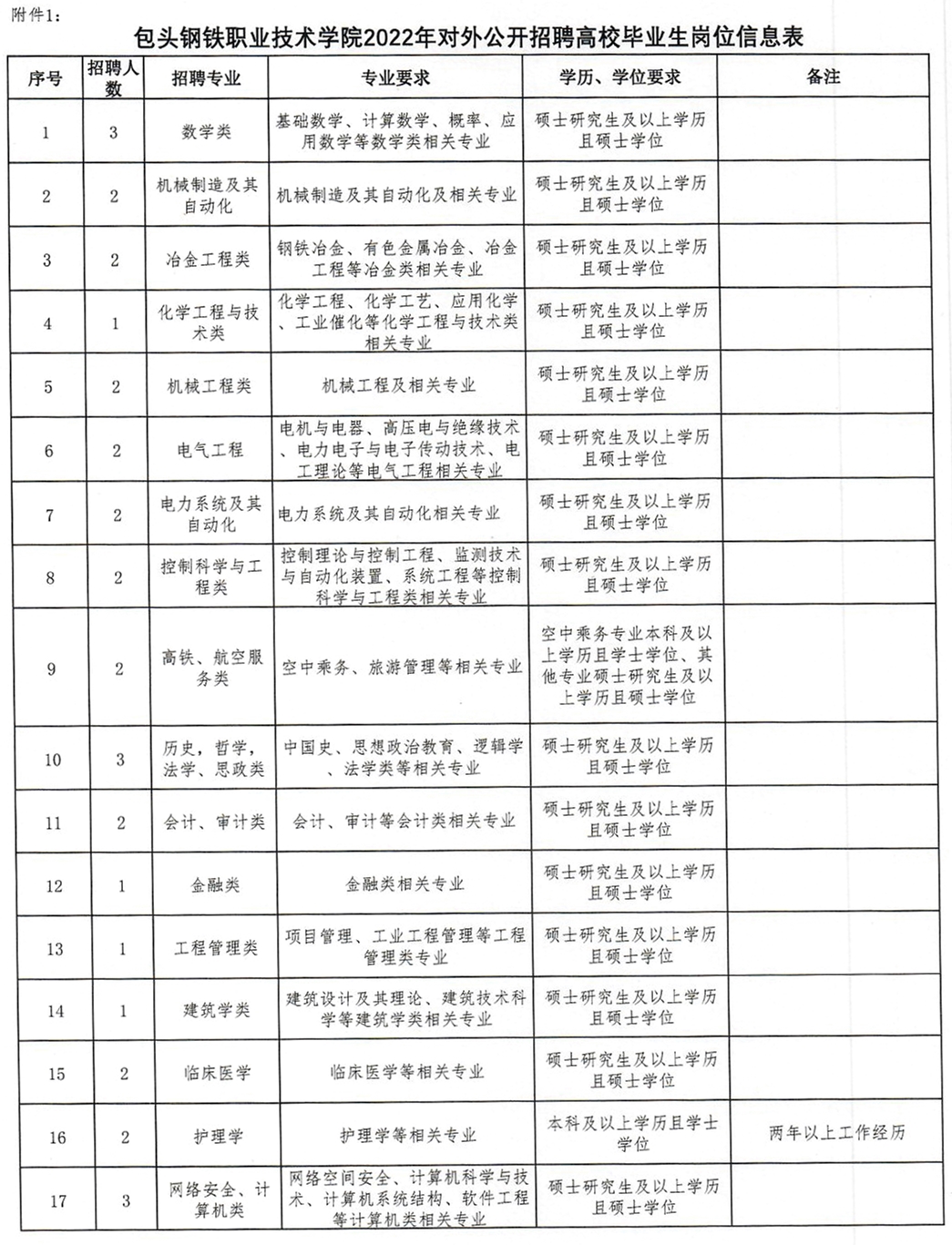 1.包頭鋼鐵職業(yè)技術(shù)學(xué)院2022年對(duì)外公開招聘高校畢業(yè)生崗位信息表