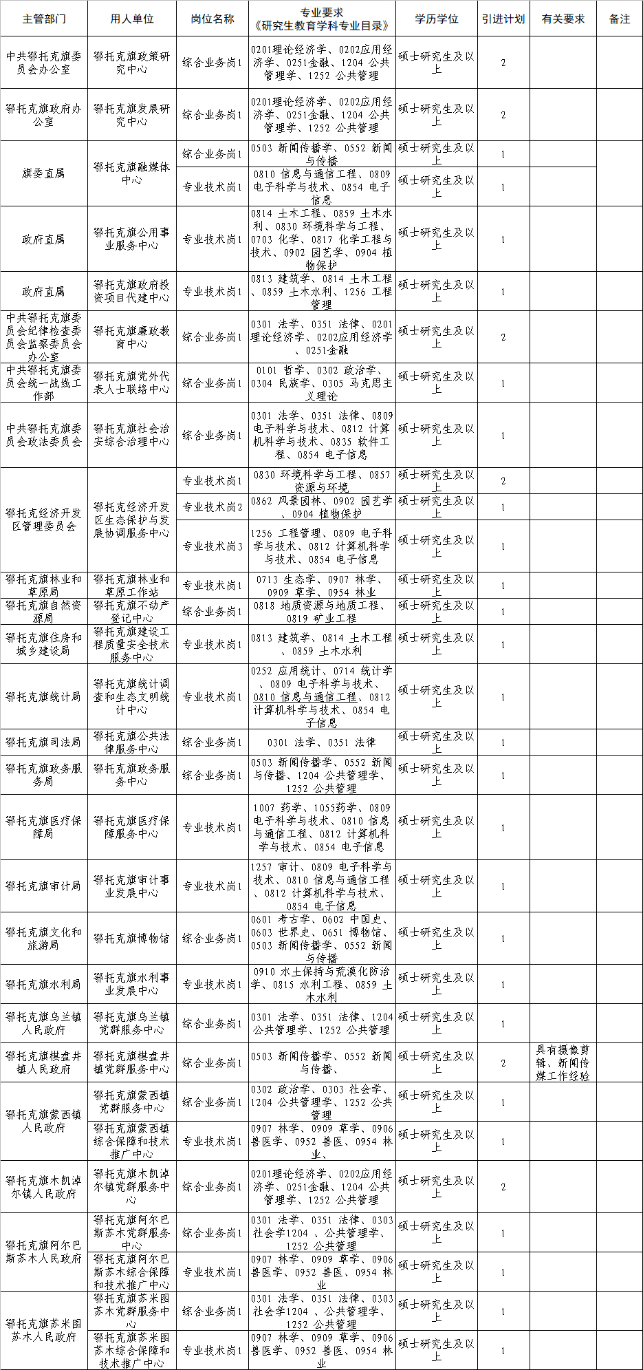 附件:1.鄂托克旗2024年度事業(yè)單位引進高層次人才和緊缺專業(yè)人才需求目錄