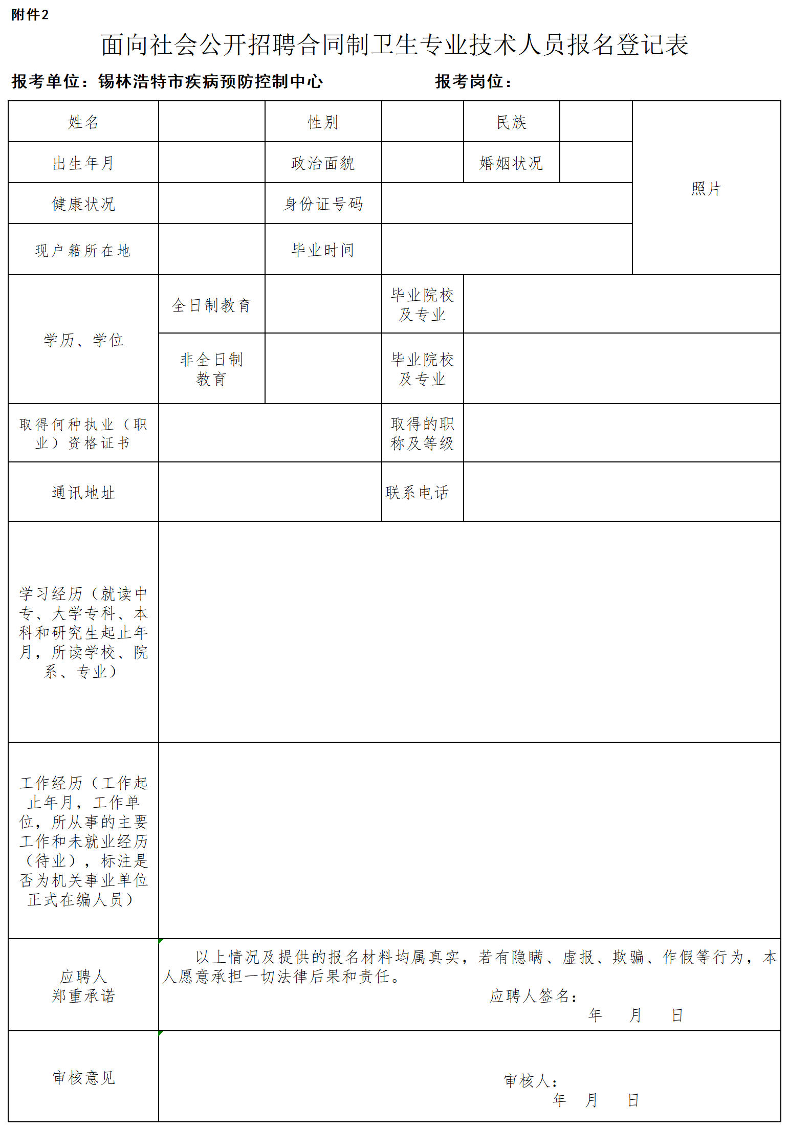 2.面向社會公開招聘合同制衛(wèi)生專業(yè)技術人員報名登記表