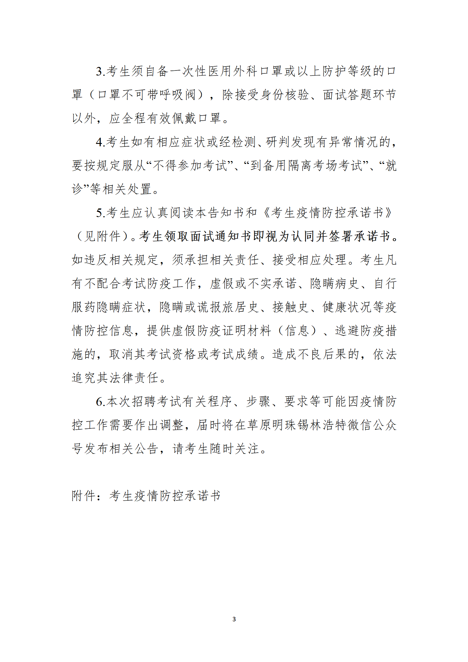 本次招聘考試考試嚴格執(zhí)行《疫情防控告知書》(附件4),并簽訂《考生疫情防控承諾書》。如有違反或有不實承諾,由報考人員承擔相應責任、接受相應處理。