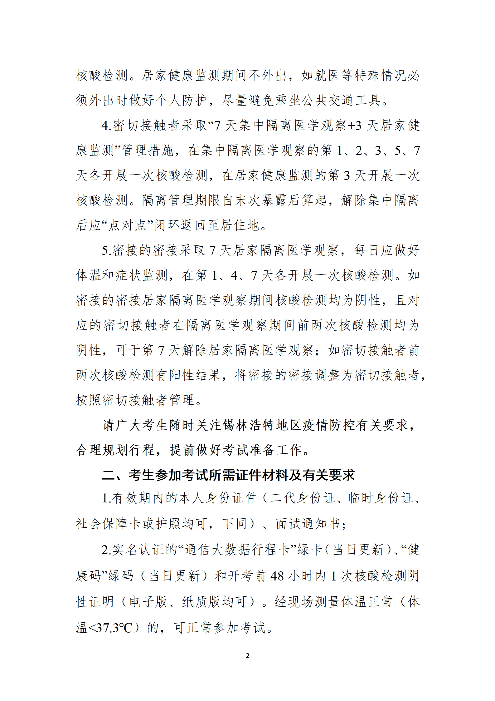 七、報考人員考試期間的疫情防控有關要求