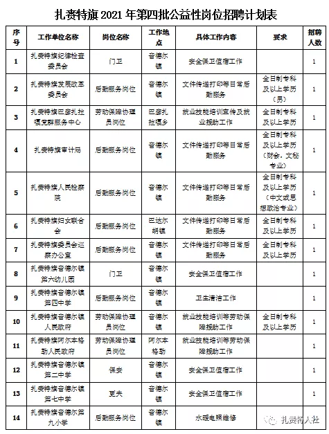 附件:扎賚特旗2021年第四批公益性崗位招聘計(jì)劃表