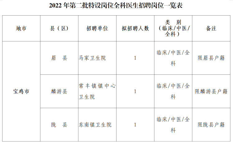 2022年寶雞市第二批特崗全科醫(yī)生招聘公告