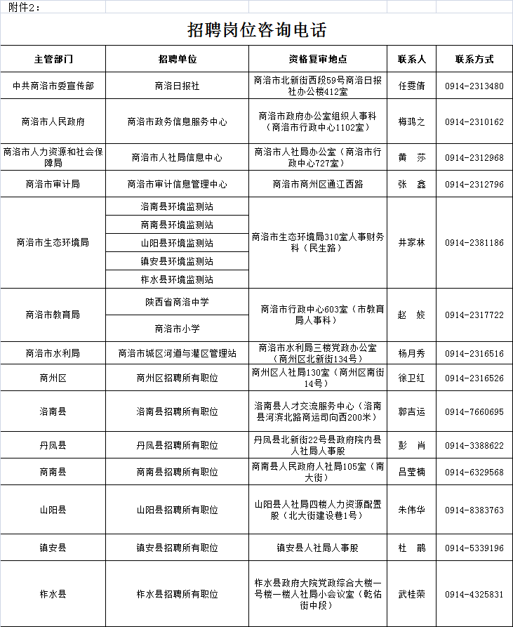 在商洛市人力資源和社會(huì)保障局官網(wǎng)發(fā)布招聘公告(http://rsj.shangluo.gov.cn/),詳見(jiàn)《2022年商洛市事業(yè)單位引進(jìn)第二批高層次人才崗位表》(附件1)。