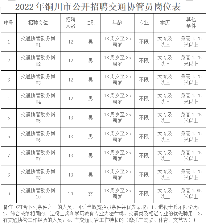 2022年銅川市招聘交通協(xié)管員公告