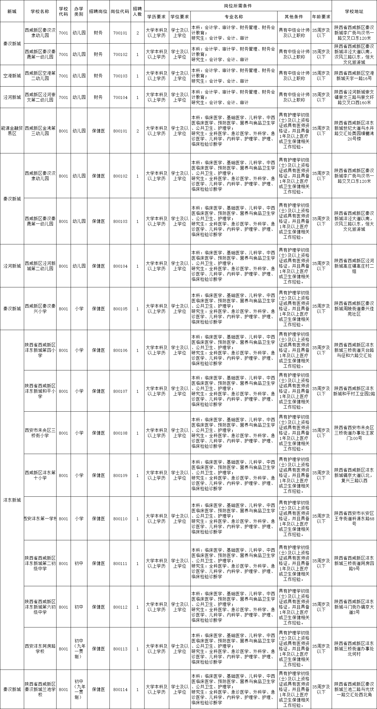 西咸新區(qū)2025年教育系統(tǒng)公開招聘崗位需求一覽表(財務(wù)、保健醫(yī)崗位20人)