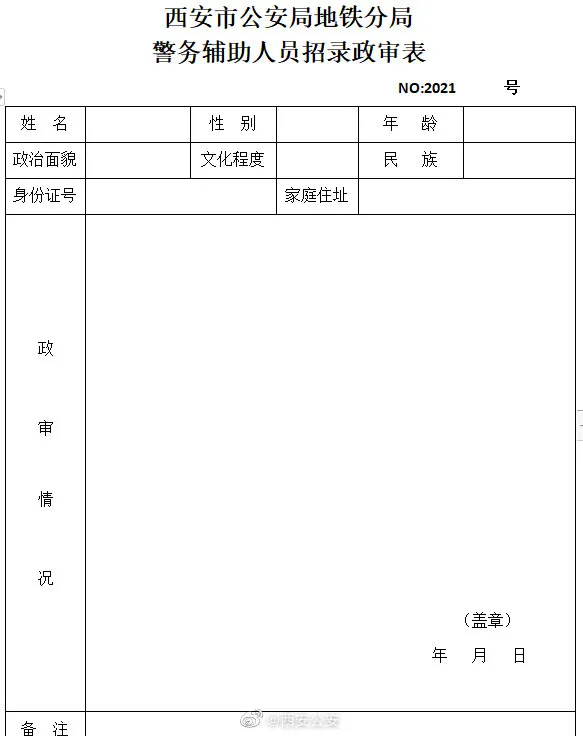 2021年西安市公安局地鐵分局面向社會公開招聘警務(wù)輔助人員公告
