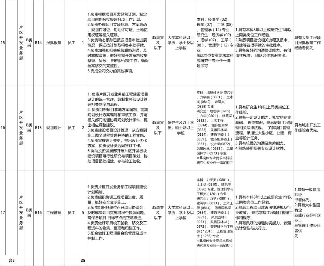 本次招聘共涉及西咸城鄉(xiāng)集團(tuán)本級(jí)及子公司17個(gè)崗位共計(jì)25名人員。具體崗位職責(zé)及崗位任職條件詳見(jiàn)《西咸城鄉(xiāng)集團(tuán)2023年社會(huì)公開(kāi)招聘需求一覽表》。