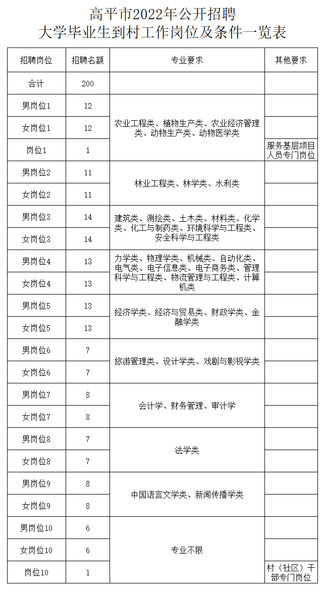 附件:高平市2022年公開招聘大學畢業(yè)生到村工作崗位及條件一覽表