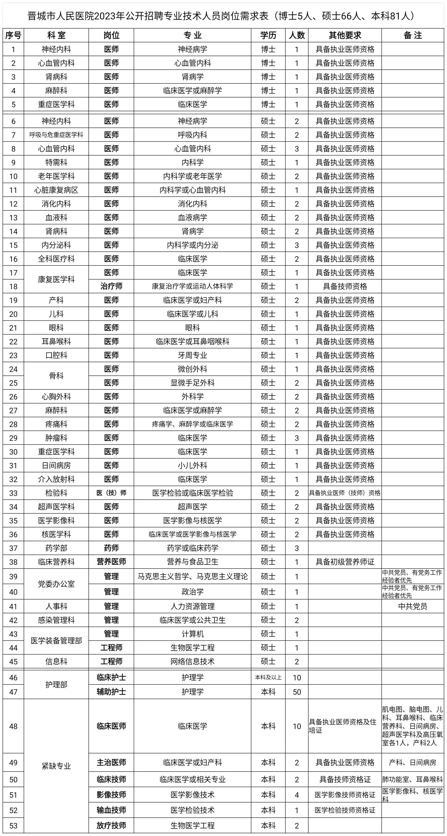2023年晉城市人民醫(yī)院公開(kāi)招聘專(zhuān)業(yè)技術(shù)人員公告