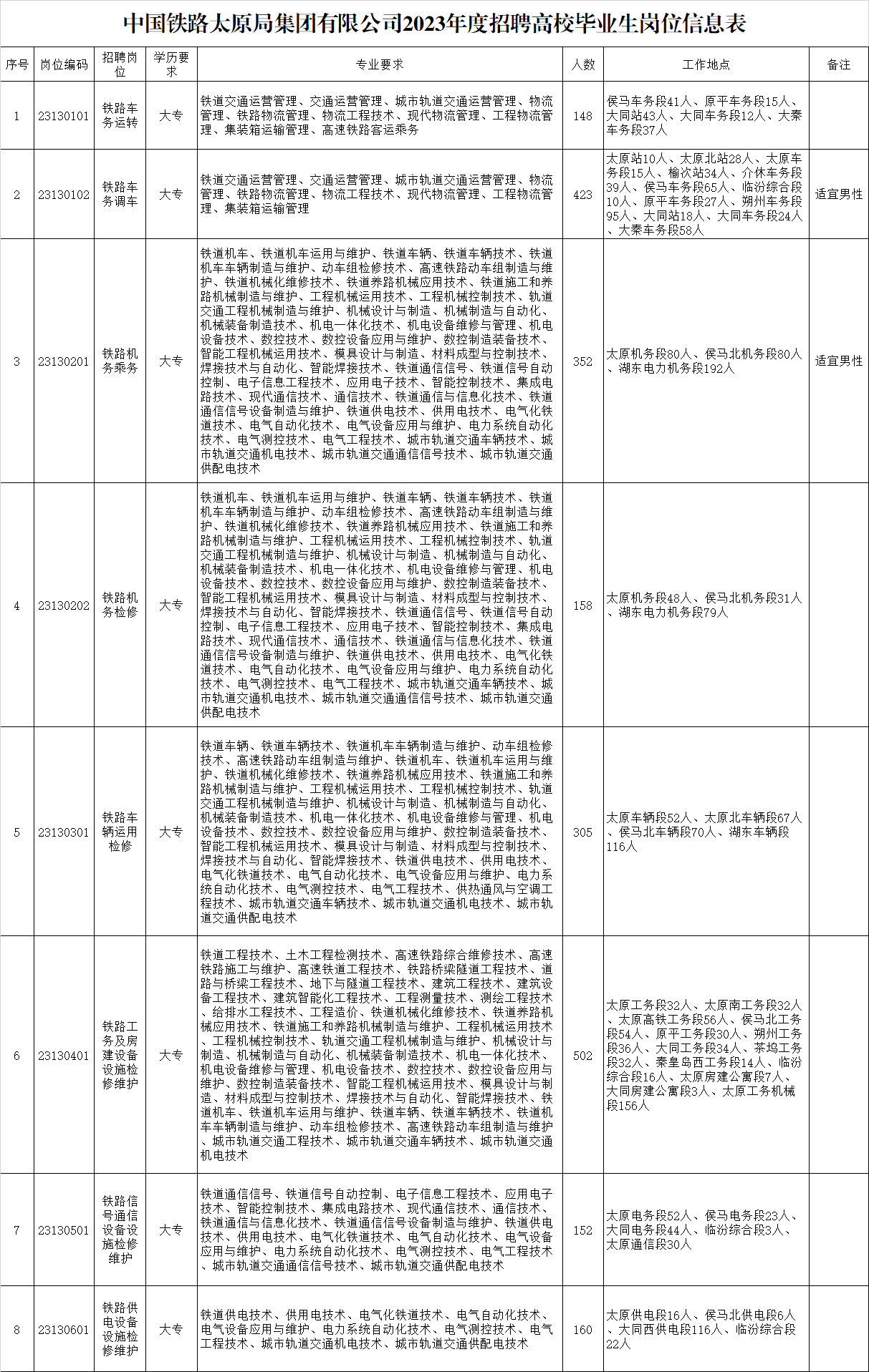 2023年中國(guó)鐵路太原局集團(tuán)有限公司招聘高校畢業(yè)生公告(一)