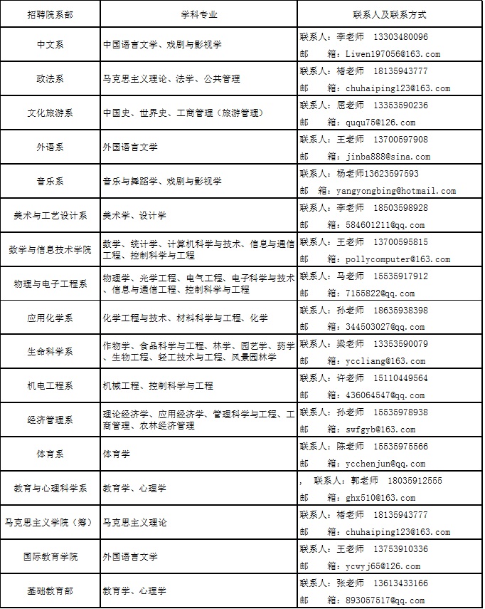 符合條件的國內外高校畢業(yè)的博士研究生通過電子郵箱報名應聘,應聘人員請將個人簡歷電子版發(fā)送至各院系部聯(lián)系人電子郵箱和ycxyrsc@ycu.edu.cn。應聘者郵件標題格式統(tǒng)一要求為:崗位+姓名+性別+學科(專業(yè))。