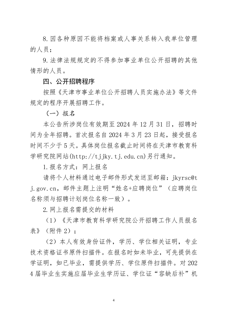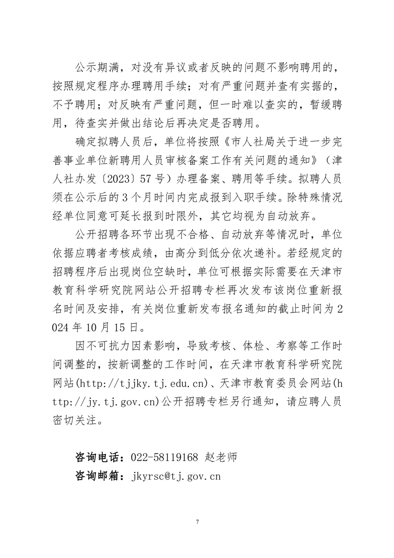 2024-03-22 17:17:37閱讀()天津市教育科學(xué)研究院根據(jù)《天津市事業(yè)單位公開招聘人員實(shí)施辦法》等有關(guān)文件要求,結(jié)合本單位人員需求實(shí)際情況,按照民主、公開、競爭、擇優(yōu)的原則,擬面向社會公開招聘教育科研人員,現(xiàn)將有關(guān)事項公告如下。