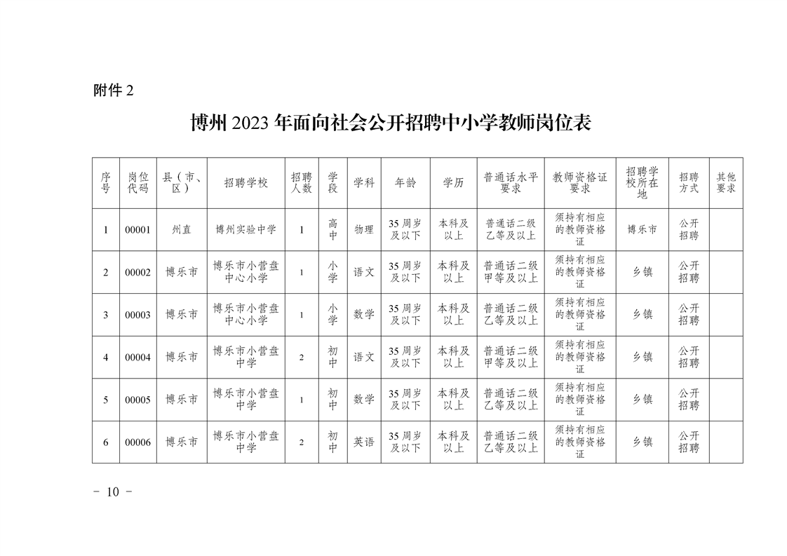 1.專(zhuān)業(yè)要求:詳見(jiàn)《博州2023年面向社會(huì)公開(kāi)招聘中小學(xué)幼兒園教師考試專(zhuān)業(yè)參考目錄》;