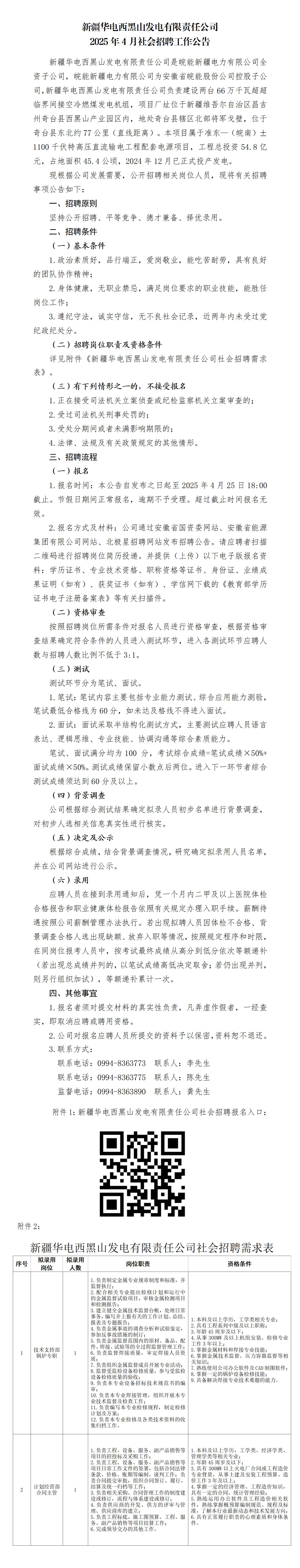 2025年新疆華電西黑山發(fā)電有限責(zé)任公司社會招聘工作公告