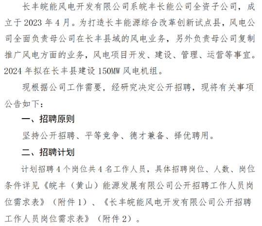 2024年安徽皖豐長(zhǎng)能投資有限責(zé)任公司所屬子公司開(kāi)展第一批公開(kāi)招聘公告