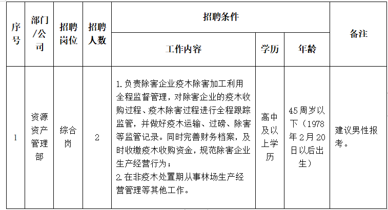 歙縣新安江林業(yè)生態(tài)發(fā)展有限公司(簡(jiǎn)稱“林發(fā)公司”)是縣屬國(guó)企歙縣經(jīng)濟(jì)開發(fā)區(qū)投資開發(fā)集團(tuán)有限公司的子公司,成立于2022年11月22日,主要業(yè)務(wù)為國(guó)家儲(chǔ)備林建設(shè)及“兩山”經(jīng)濟(jì)發(fā)展。目前因業(yè)務(wù)發(fā)展需要,委托黃山市仁和人力資源服務(wù)有限公司面向社會(huì)公開招聘勞務(wù)派遣工作人員。現(xiàn)將有關(guān)事項(xiàng)公布如下: