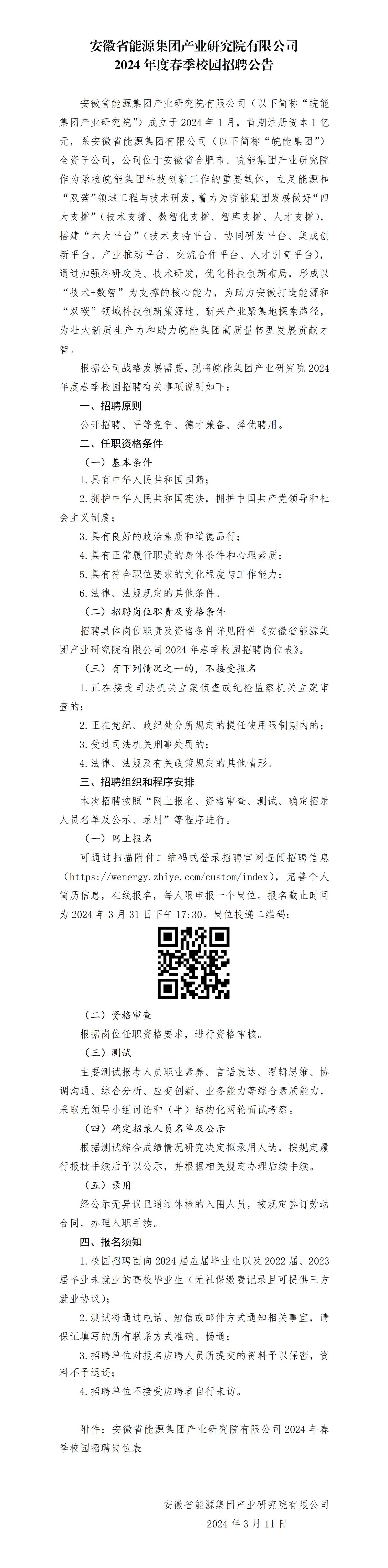 根據(jù)公司戰(zhàn)略發(fā)展需要,現(xiàn)將皖能集團(tuán)產(chǎn)業(yè)研究院2024年度春季校園招聘有關(guān)事項(xiàng)說明如下: