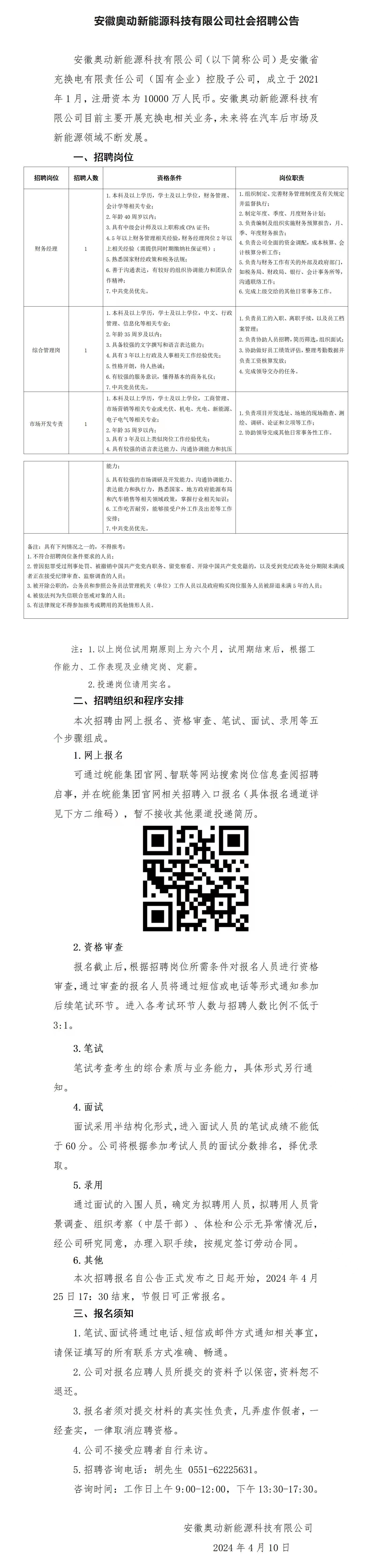2024年安徽奧動(dòng)新能源科技有限公司社會(huì)招聘公告