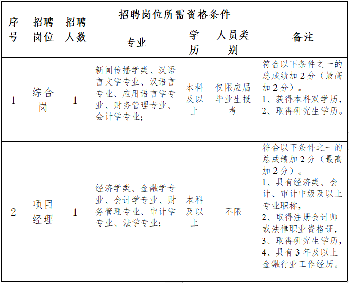 本次擬招聘工作人員2名,35周歲以下,男女不限,具體崗位要求如下: