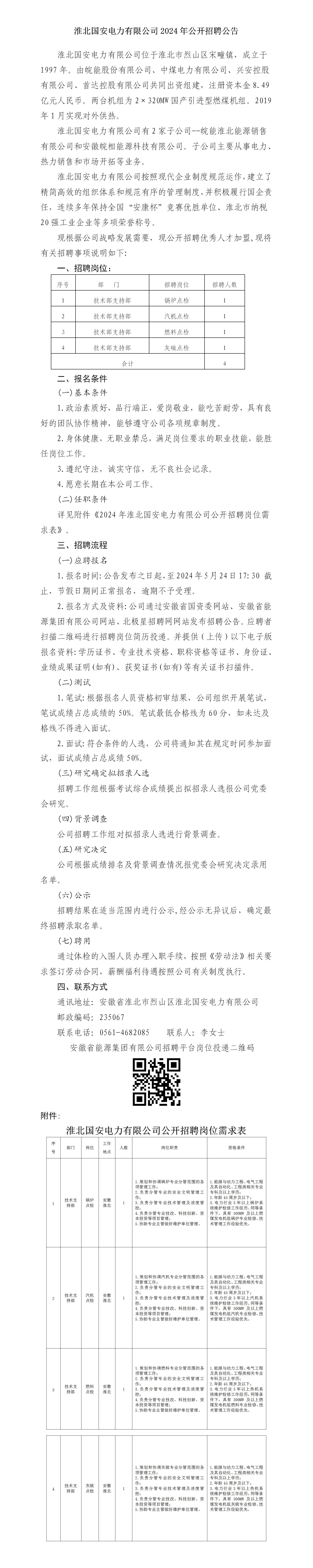 淮北國安電力有限公司有2家子公司--皖能淮北能源銷售有限公司和安徽皖相能源科技有限公司。子公司主要從事電力、熱力銷售和市場開拓等業(yè)務。