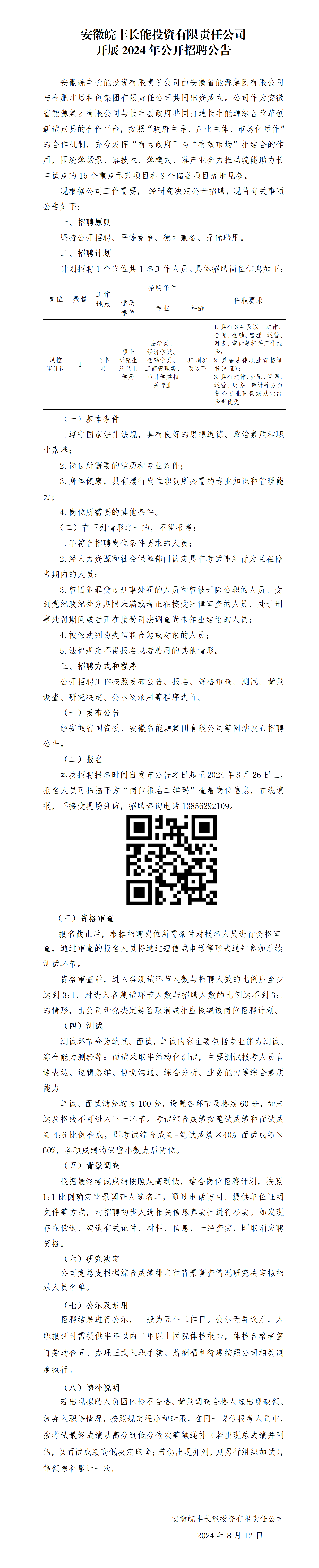 2024年合肥安徽皖豐長(zhǎng)能投資有限責(zé)任公司開(kāi)展公開(kāi)招聘公告