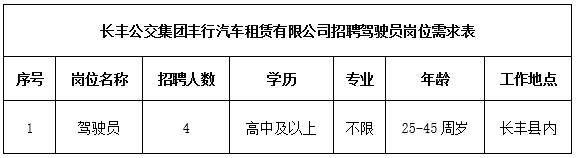 4、長(zhǎng)豐縣豐行汽車(chē)租賃有限公司對(duì)本次招聘享有最終解釋權(quán);