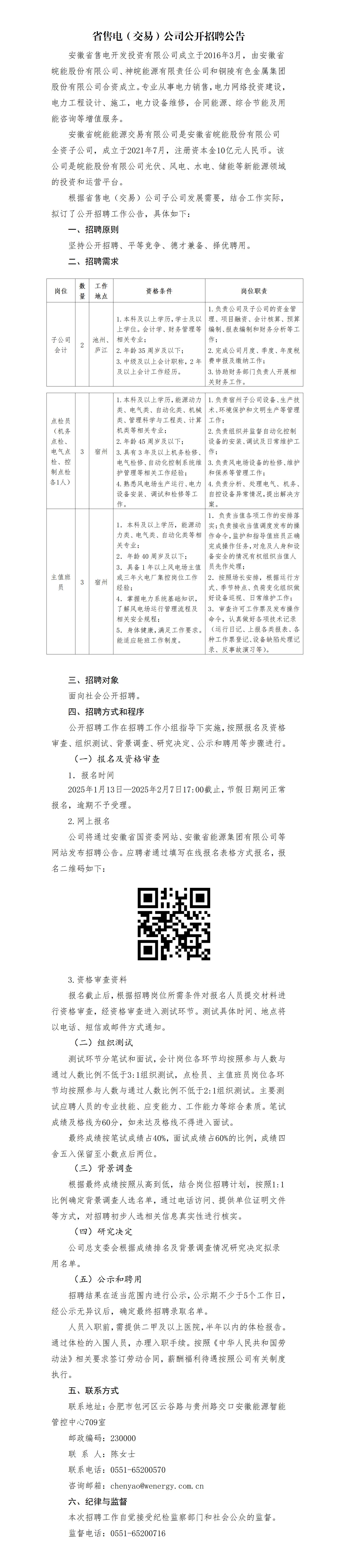 2025年安徽省售電(交易)公司公開(kāi)招聘公告