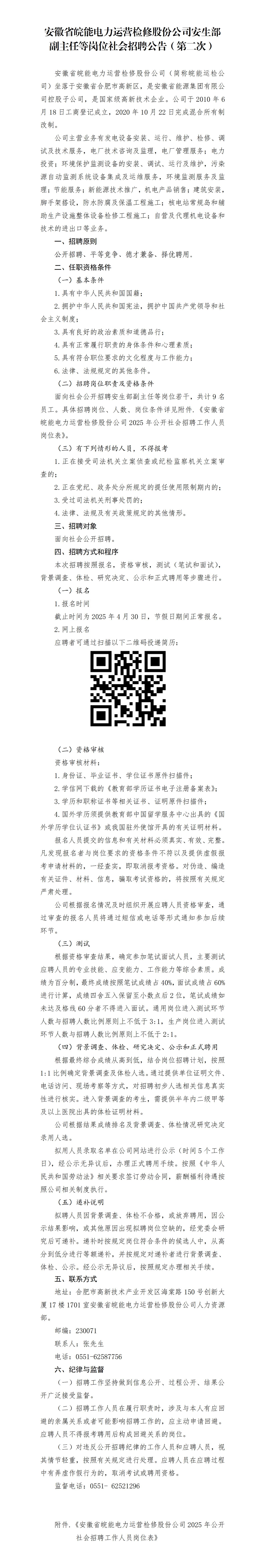 2025年安徽省皖能電力運(yùn)營檢修股份公司安生部副主任等崗位社會社會招聘公告(第二次)